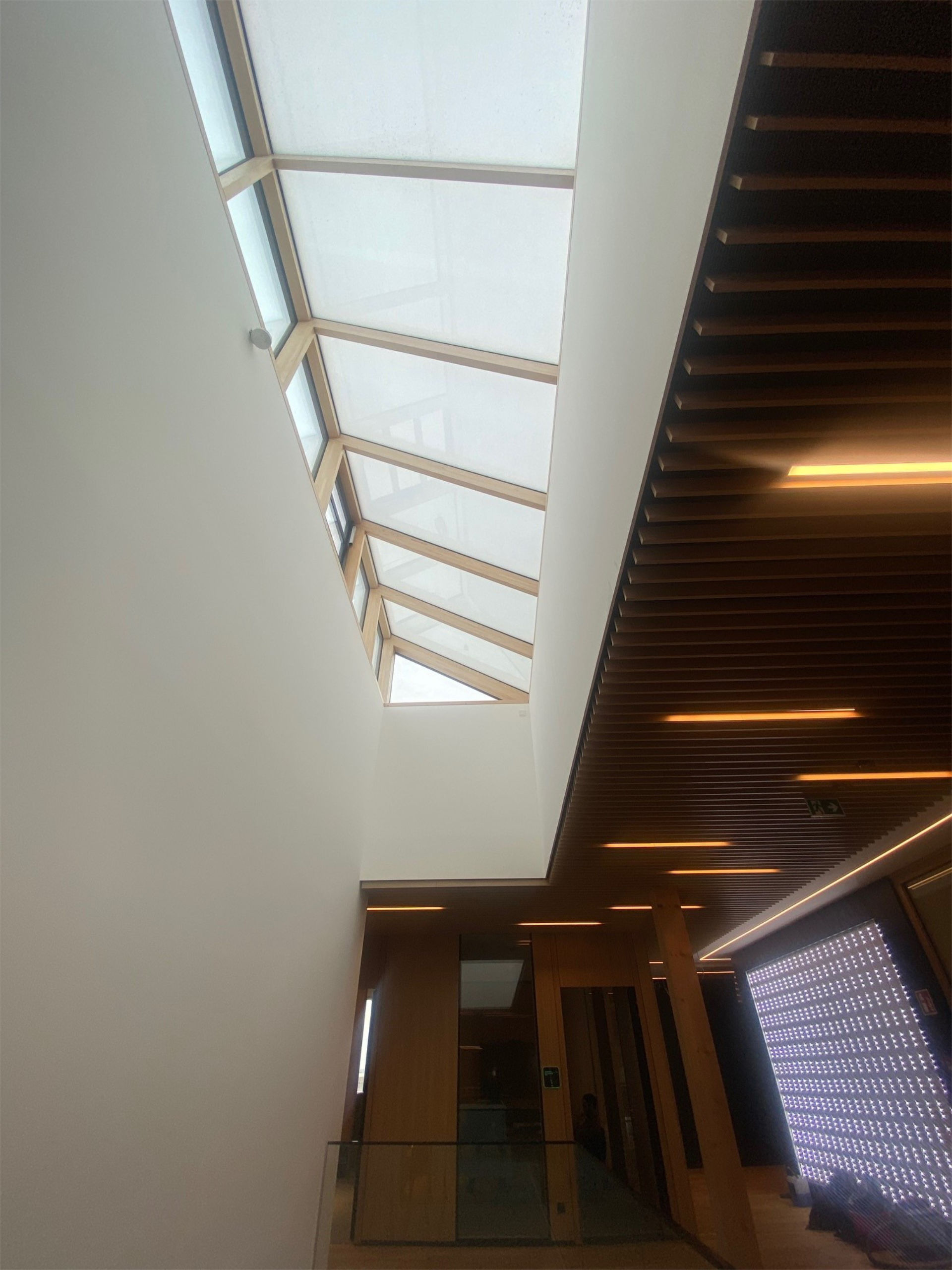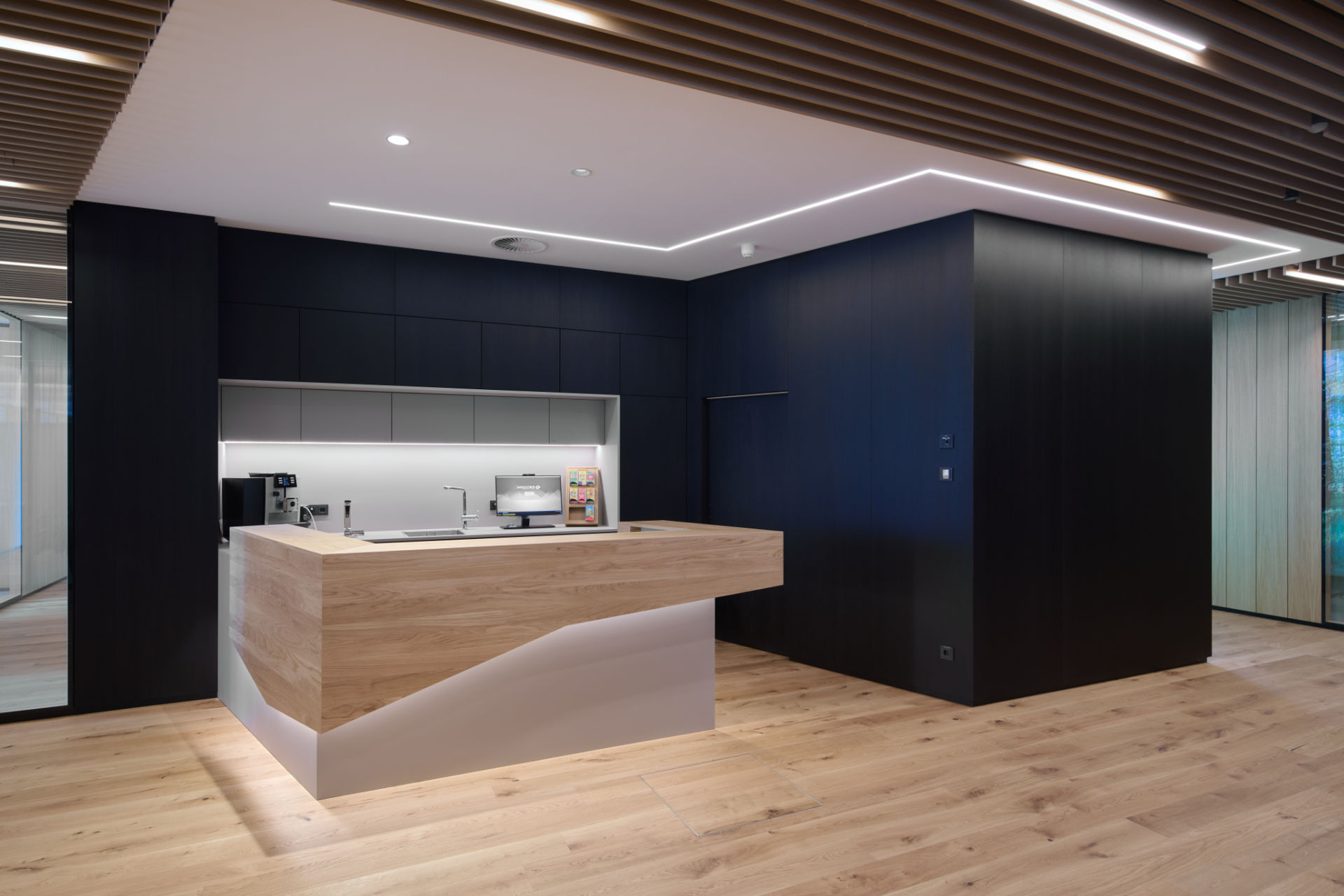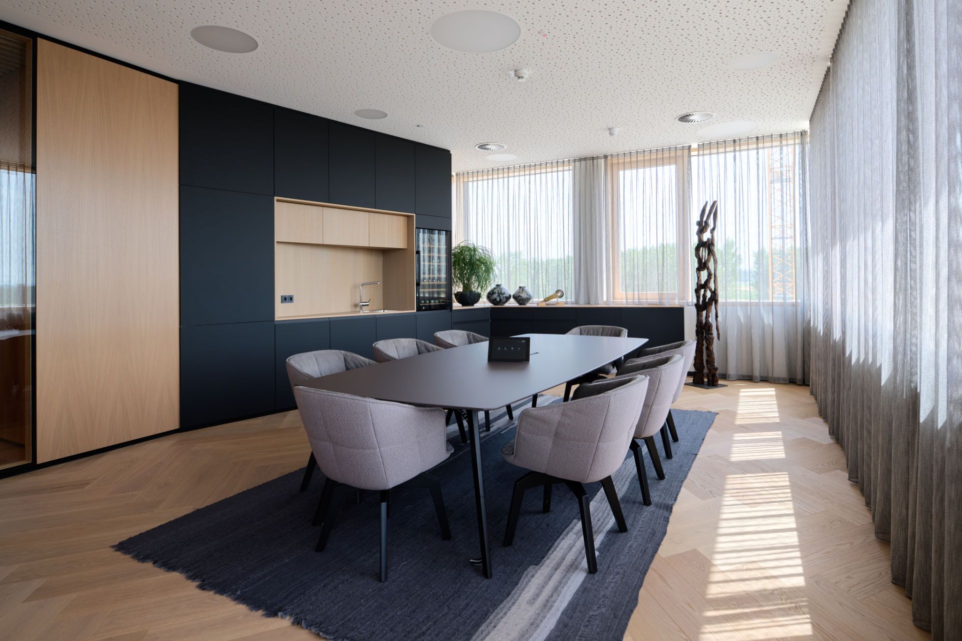 Die Büroaufstockung beinhaltet im 3. OG eine Sky Lounge mit exquisiter Ausstattung, die auch für Mitarbeiter zugänglich ist. Die Sky Lounge verfügt über eine Küche und einen Kühlraum und bietet einen Ausgang durch einen Wintergarten auf die Dachterrasse, die mit einem Aufzug erschlossen ist.